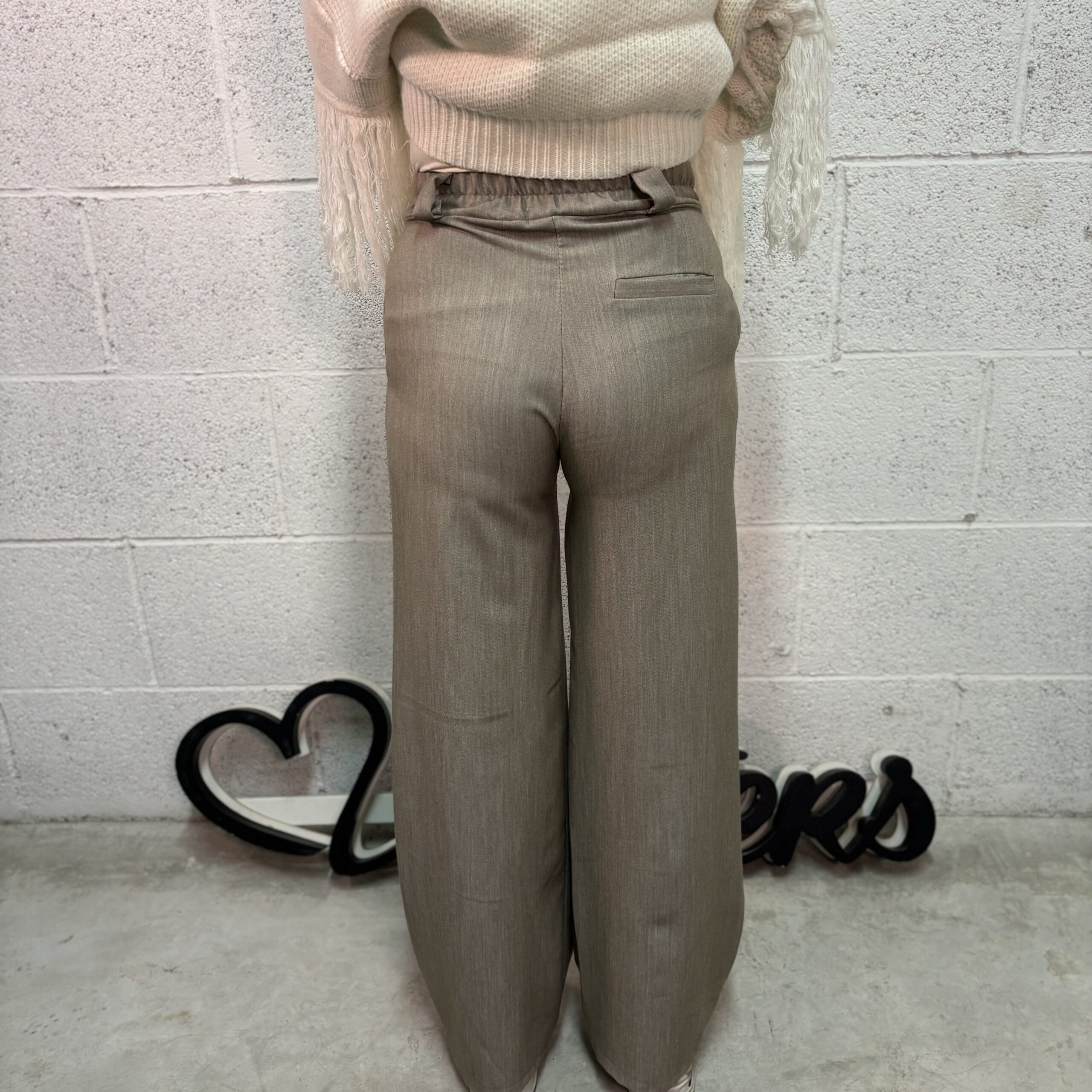 Pantalone palazzo Tortora quindi con gamba larga e con taschino sul retro.